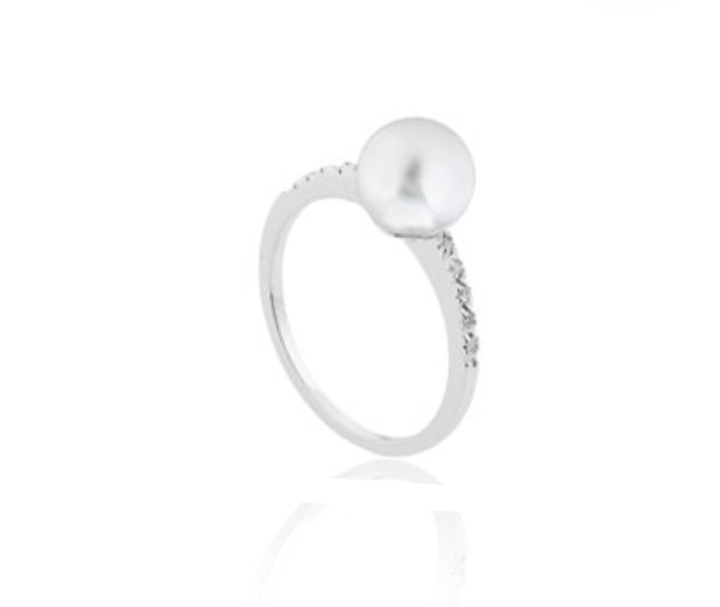 Anello in Oro Bianco 18 Carati con Diamanti e Perla Giapponese Centrale