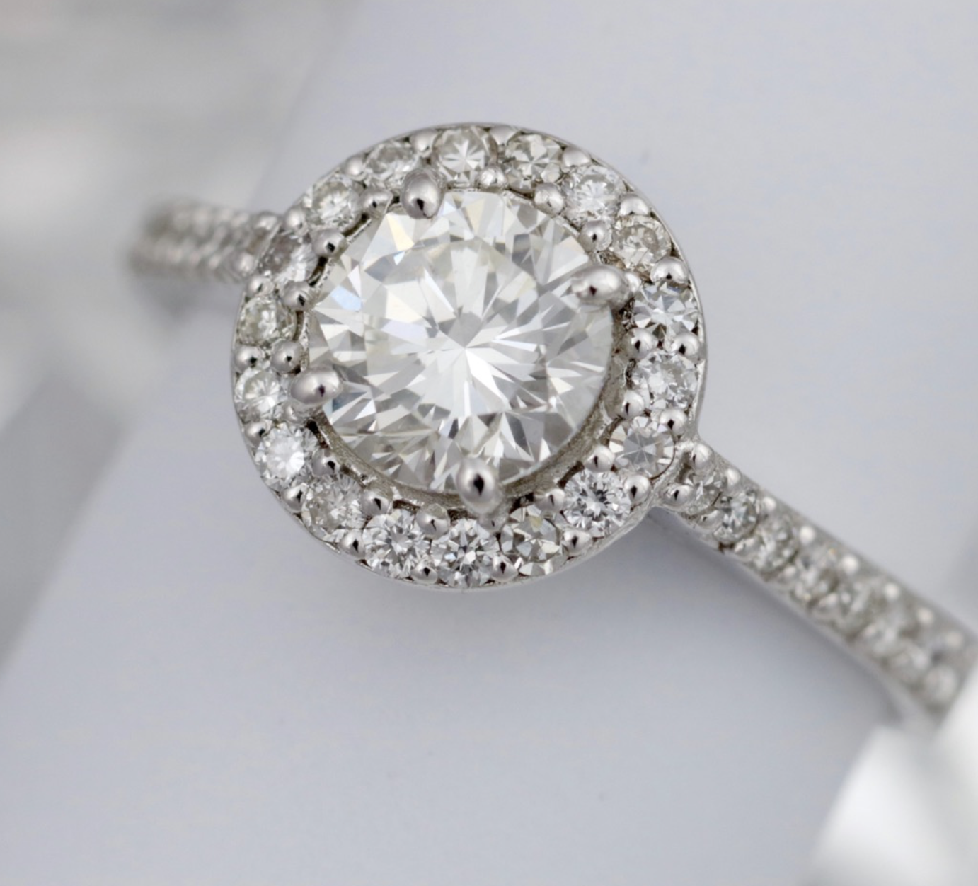 ANELLO SOLITARIO CON CORNICE E GAMBO DI BRILLANTI