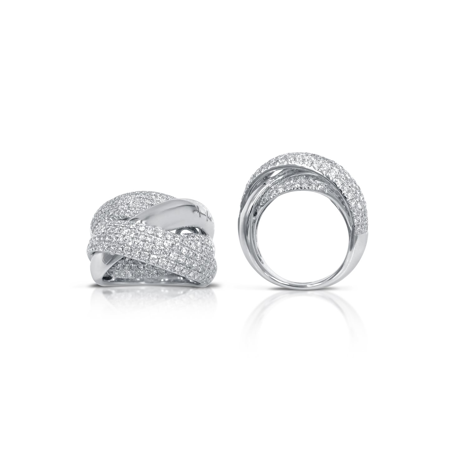 L’intera superficie del gomitolo è impreziosita da un pavé di brillanti di alta qualità, sapientemente incastonati a mano per garantire massima brillantezza e uniformità. Ogni pietra riflette la luce con intensità, regalando all’anello un bagliore continuo e ipnotico.