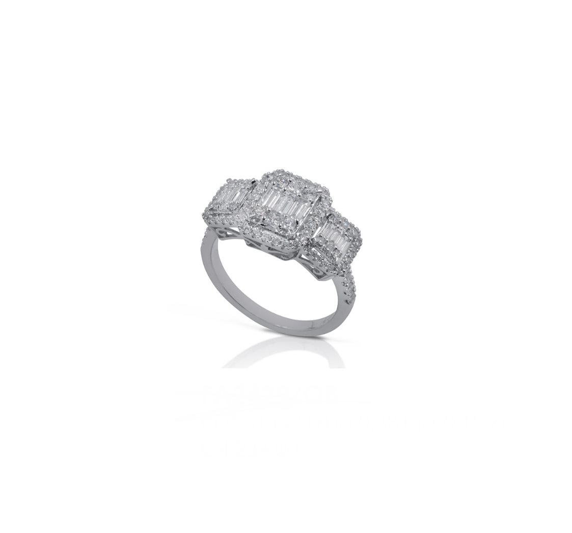 Scopri l’eleganza senza tempo dell’Anello Trilogy in Oro 18 Carati, un capolavoro di gioielleria che celebra passato, presente e futuro con un design raffinato e contemporaneo. Al centro, un diamante ottagonale di generosa caratura cattura la luce con un fuoco incantatore, mentre ai lati due diamanti taglio baguette in gradazione degradé creano un armonioso gioco di proporzioni e brillantezza.