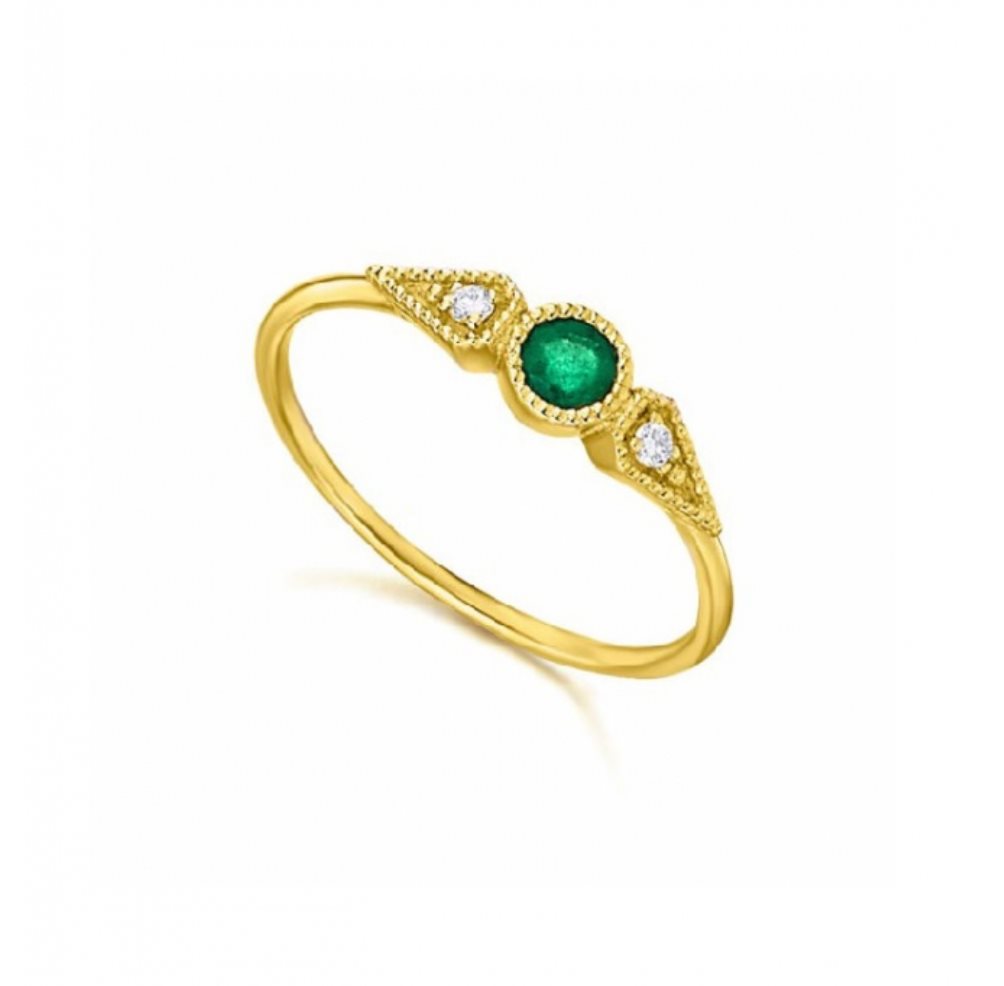 Al centro della sua struttura, un diamante taglio brillante da 0,05 carati è sapientemente incastonato a quattro griffe, lasciando filtrare la luce per esaltarne brillantezza e purezza. Accanto al diamante, un raffinato smeraldo da 0,14 carati aggiunge un delicato accento di colore, simbolo di armonia e distinzione.