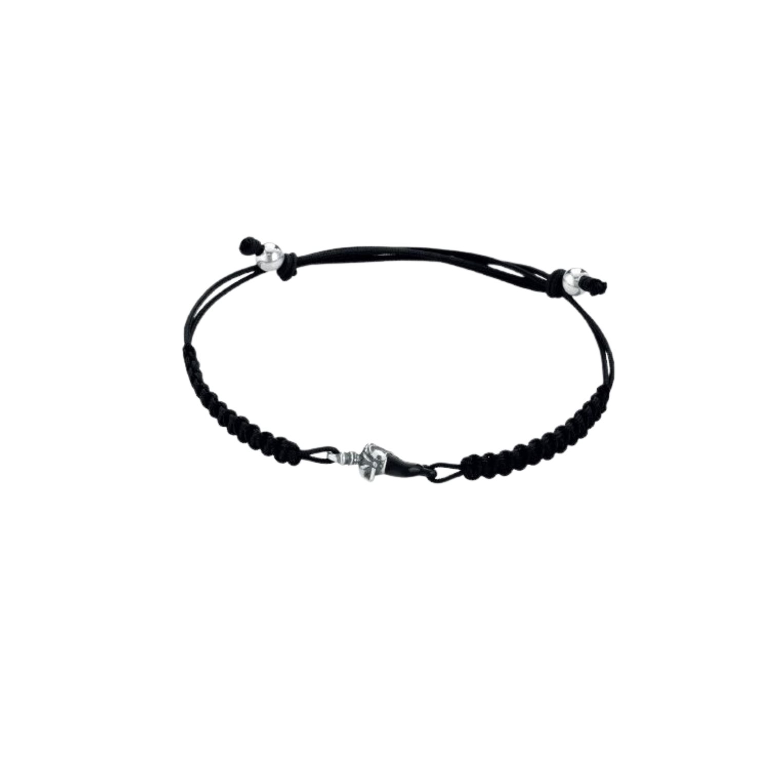 Bracciale da uomo , realizzato in cordino cerato ed argento 925 bianco con maglie agganciate e corno portafortuna smaltato