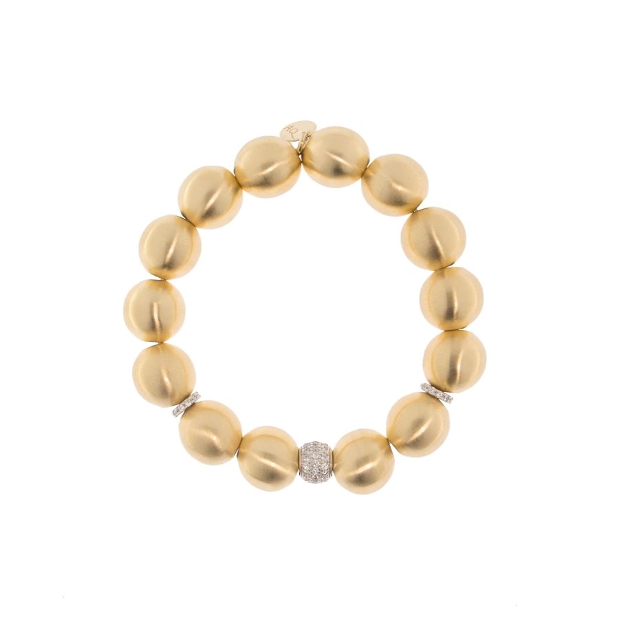 Bracciale elastico con boule spazzolate e rondelle pavettate in argento 925‰ placcato oro giallo 23kt.