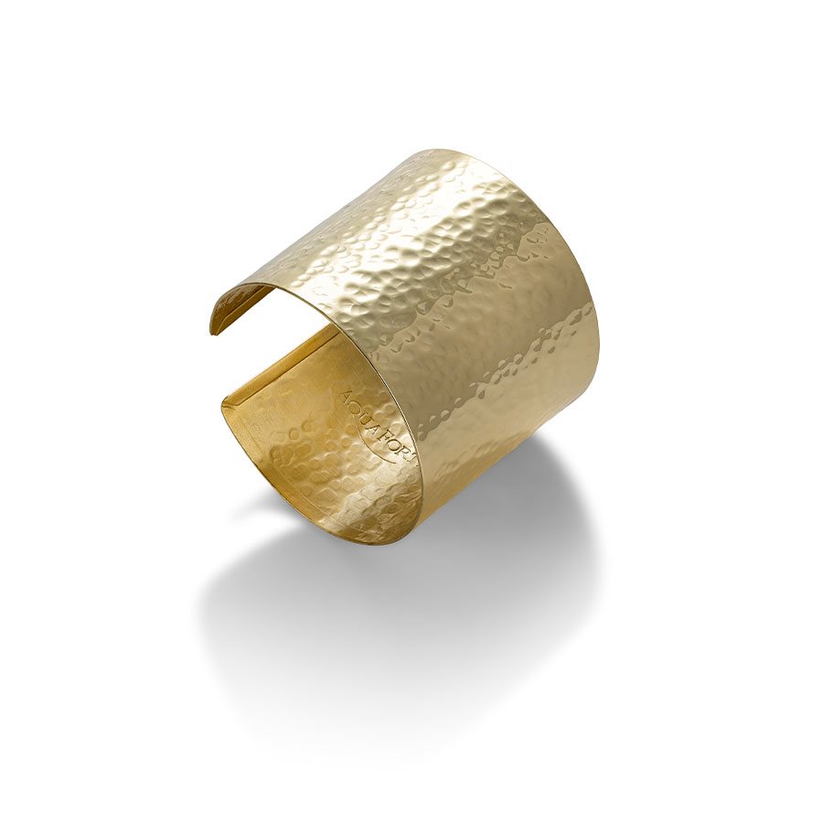 Bracciale alto a schiava lineare lucido e martellato in argento 925‰ placcato oro giallo 23kt.