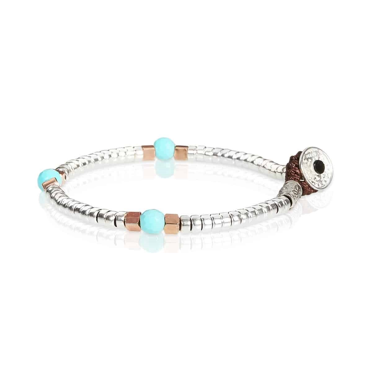Turchese rivestiva per i nostri antenati il ruolo di pietra protettiva. In particolar modo veniva utilizzata per creare talismani capaci di difendere dalla cattiva sorte. Non promuove l’azione, ma l’introspezione. E’ quindi eccellente per coloro che tendono ad agire d’impulso senza riflettere troppo. Con un design moderno, il bracciale Mon Amour 37 è il regalo perfetto, adatto ad ogni occasione, un oggetto dal carisma forte senza sottovalutare l’eleganza che necessariamente un bracciale Gerba deve avere.