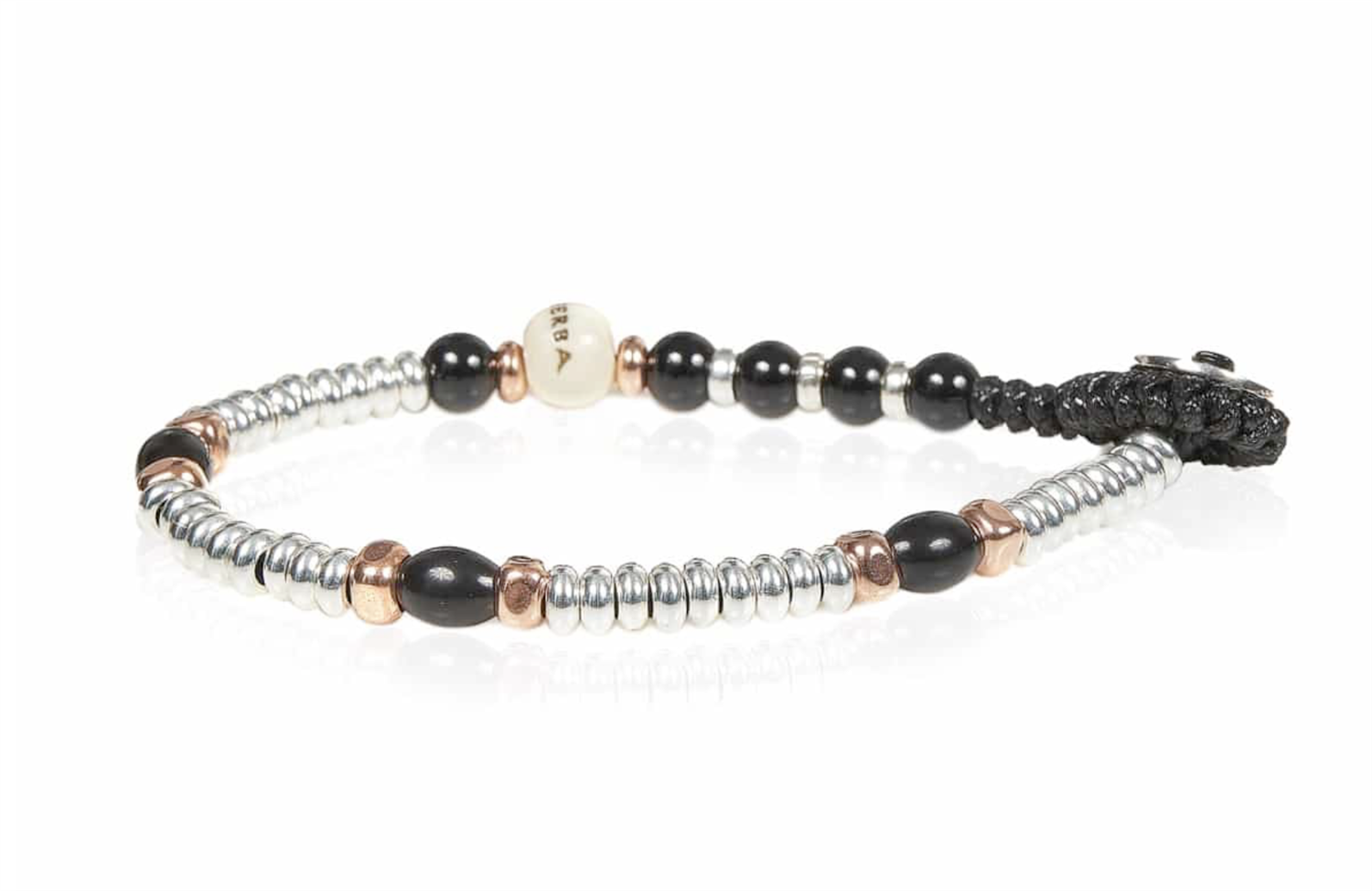 Il bracciale Gerba Mon Amour 18 si distingue per il suo particolare design, realizzato completamente in Argento con cordino in filo cerato e perle in pietra 8mm Onice.