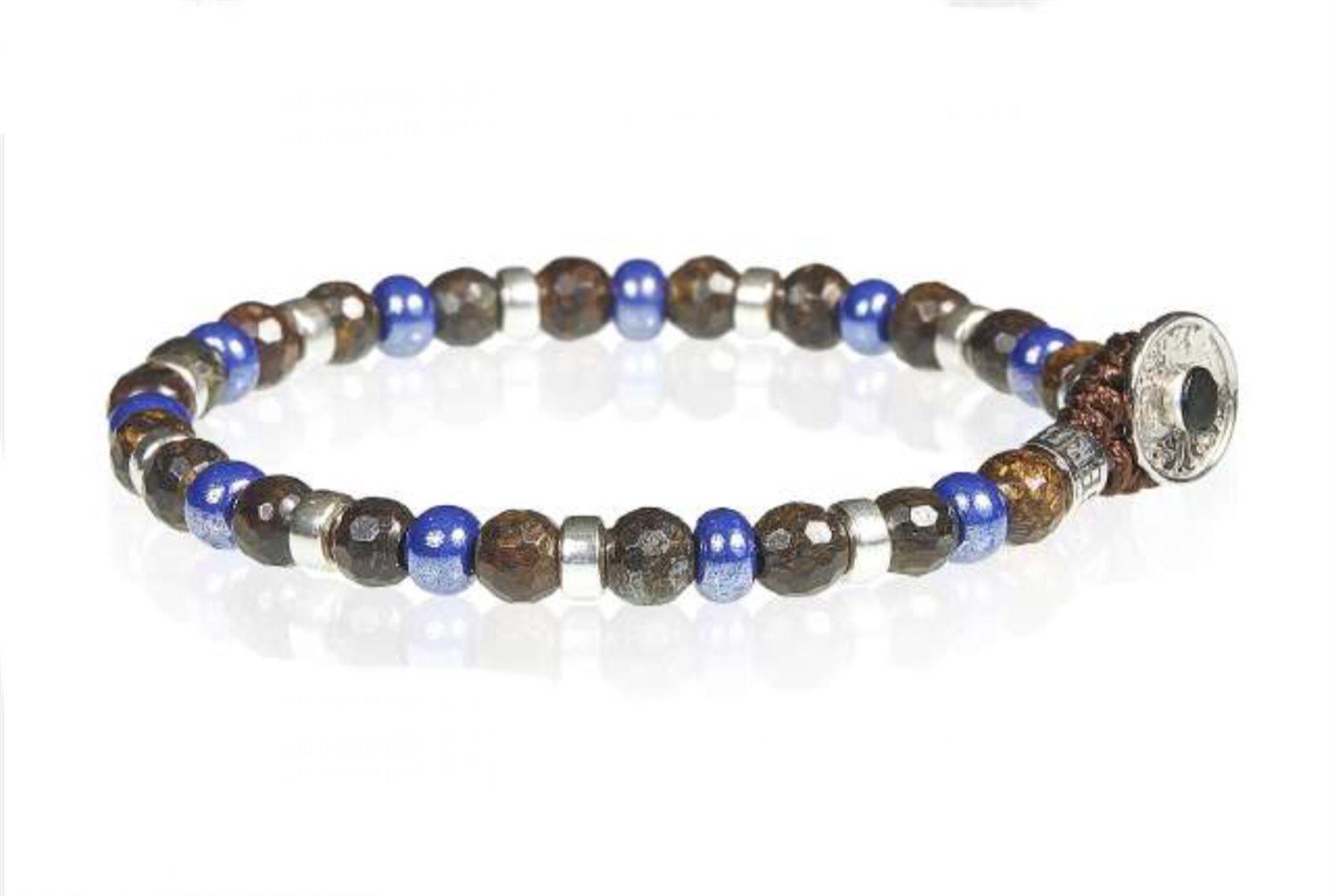 Scopri il fascino unico di questo bracciale artigianale realizzato in argento sterling 925, impreziosito da un’armoniosa combinazione di pietre dure naturali multicolor, in cui dominano le sofisticate tonalità del marrone e del blu. Ogni dettaglio di questo gioiello racconta un’essenza autentica, dove la maestria orafa incontra la bellezza spontanea delle materie prime della terra.