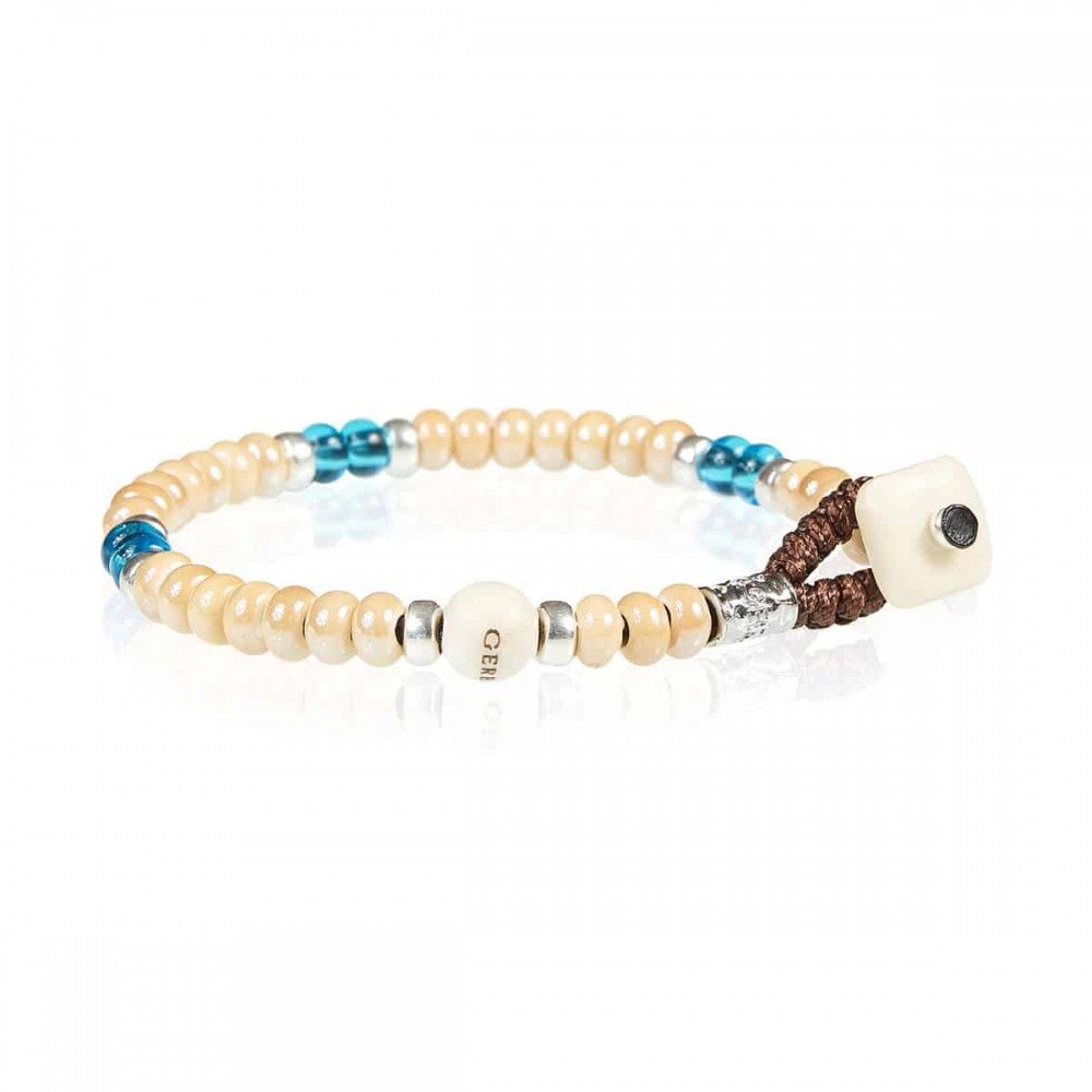 Al centro del design spiccano le rondelle in ceramica wash da 6 mm, lavorate a mano e decorate con motivi che richiamano l’essenza delle isole del Mediterraneo. Accanto a esse, murrine colorate e frammenti di osso naturale aggiungono un tocco etnico e autentico, mentre dettagli in Argento 925 esaltano il valore del gioiello con una lucentezza sobria e duratura.