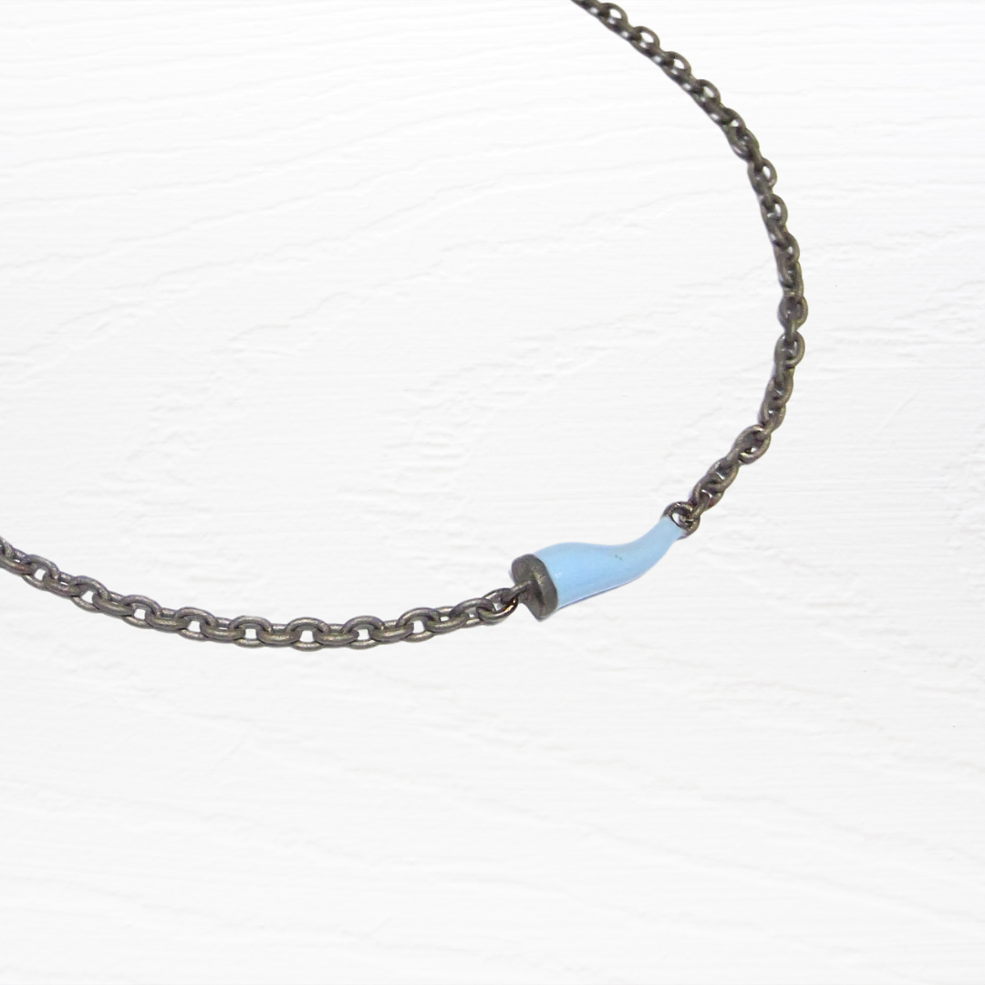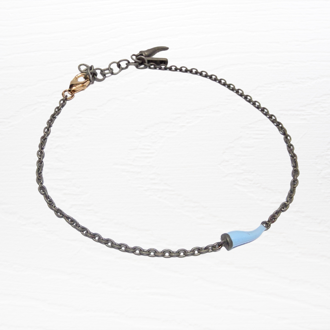 Bracciale in Titanio con catena groumette e corno colore azzurro smaltato con moschettone in oro rosa 9ct.