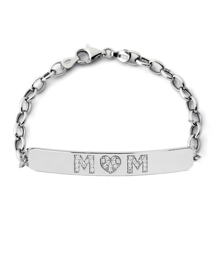 Bracciale in argento con barra rigida e scritta “MOM” con zirconi Bracciale in argento con barra rigida e scritta MOM con zirconi è un regalo perfetto per la mamma. Questa linea elegante e giovanile nasce dalla voglia di regalare qualcosa di unico alla mamma. Si indossa con ogni tipo di abbinamento, quindi perfetto per ogni occasione. La barra rigida con scritta e zirconi lo rende casual ed alla moda !