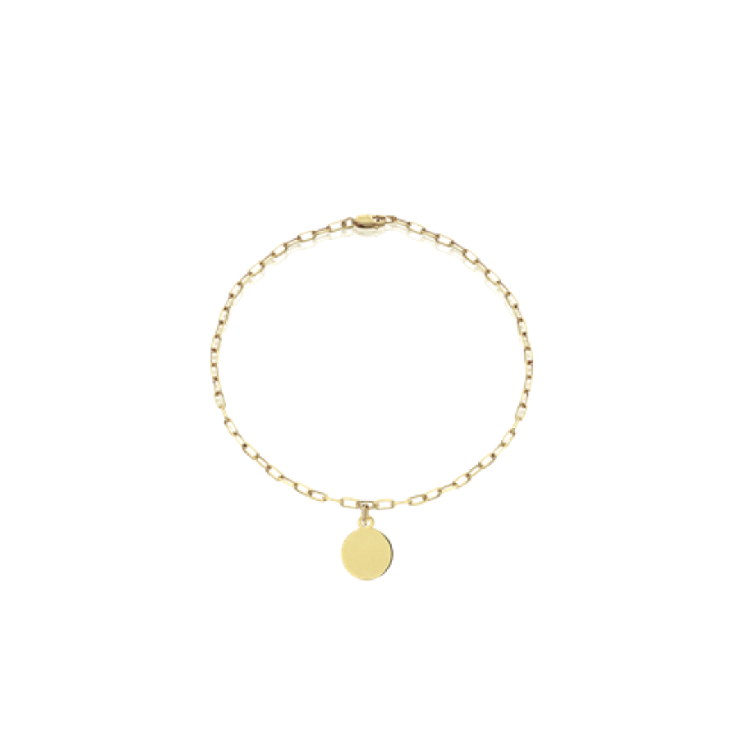 Raffinato e versatile, questo bracciale in oro 18 carati si distingue per la sua eleganza discreta e il design senza tempo. Al centro del bracciale è inserito un charm tondo, lavorato con cura artigianale, che dona un tocco di personalità al gioiello.