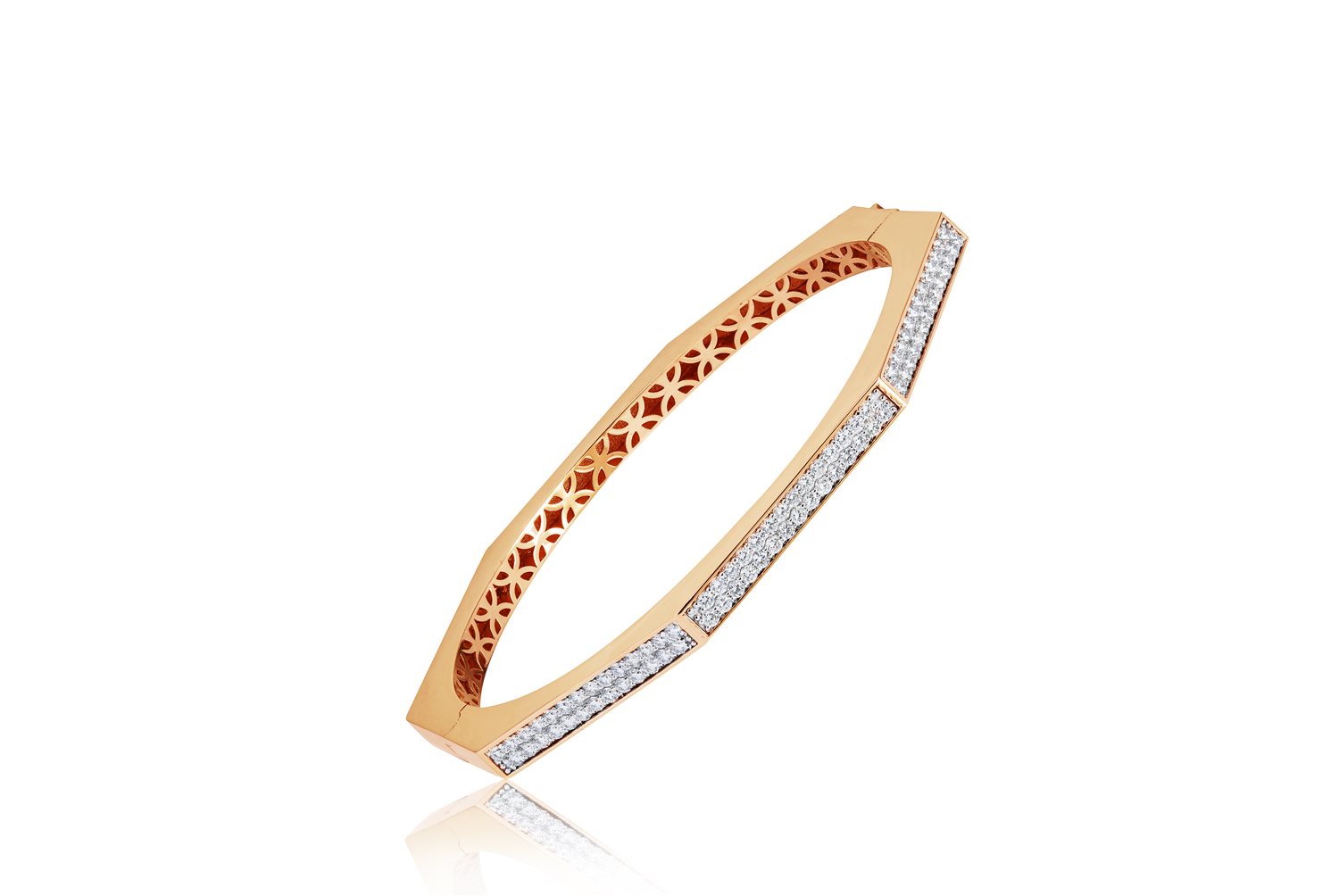 Bracciale rigido in oro 18ct con diamanti da tre lati.