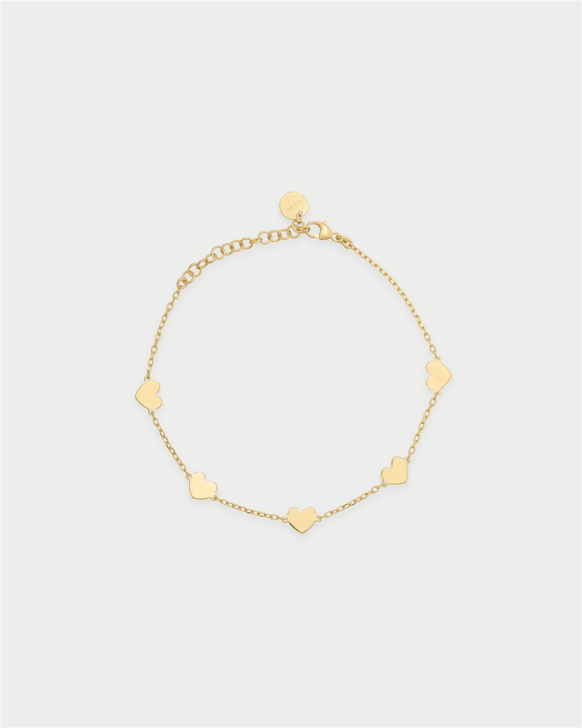 Braccialetto con cinque cuori lisci e catena in argento 925 riciclato
