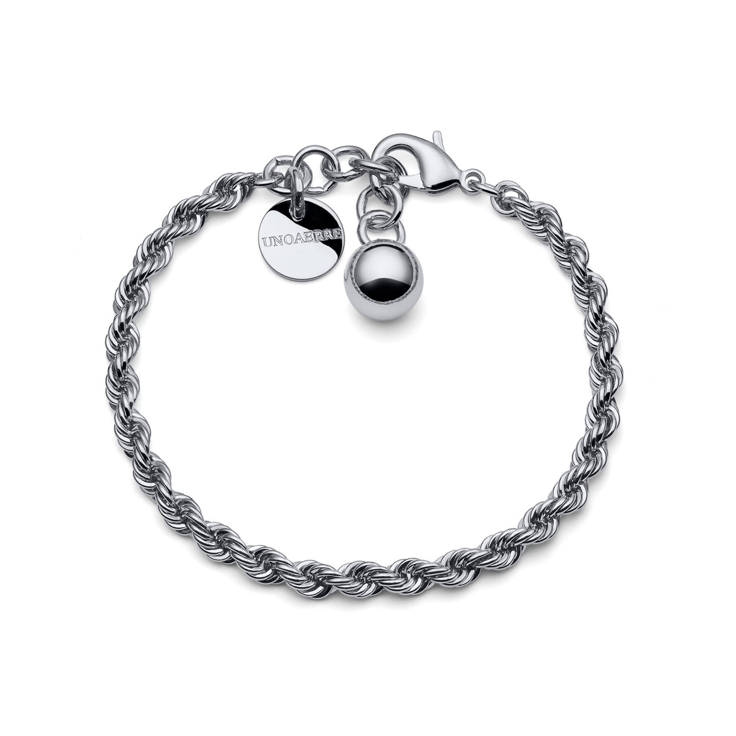 Bracciale di catena in maglia corda con chiusura a moschettone, regolabile grazie ad anelli di allungamento. La particolarissima catena a corda rende questo grazioso bracciale un accessorio unico ed elegante, per non essere mai scontati e banali. Abbinalo alla collana per essere ancor più glamour! Lunghezza: 17 cm + 3,5 cm.