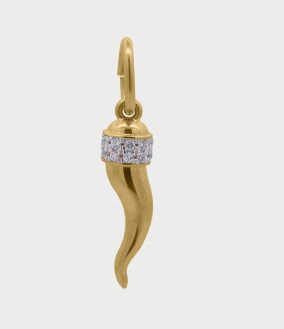 Charm Corno Fortuna XL in lega RDM con argentatura 925 e oro 18Kt. Simbolo di protezione, fortuna e positività.