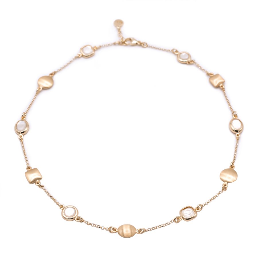 Collana girocollo leggero con madreperle in argento 925‰ placcato oro giallo 23kt.