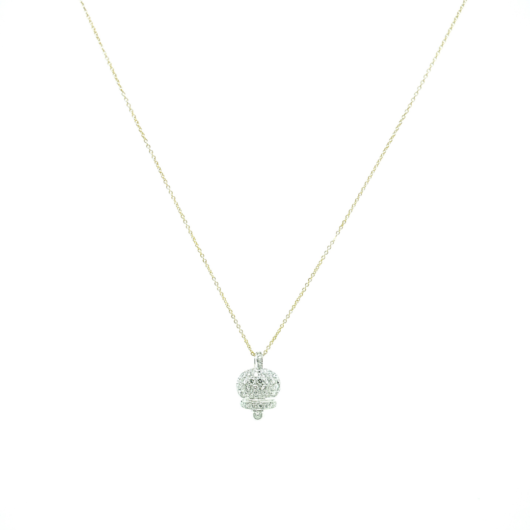 Il campanellino è adornato da diamanti taglio brillante, selezionati con cura per la loro purezza e lucentezza, che catturano la luce in un danzare di scintille, come il riflesso del sole sul mare di Capri. Ogni pietra è montata a mano con tecnica antica, garantendo massima sicurezza e un dettaglio impeccabile.