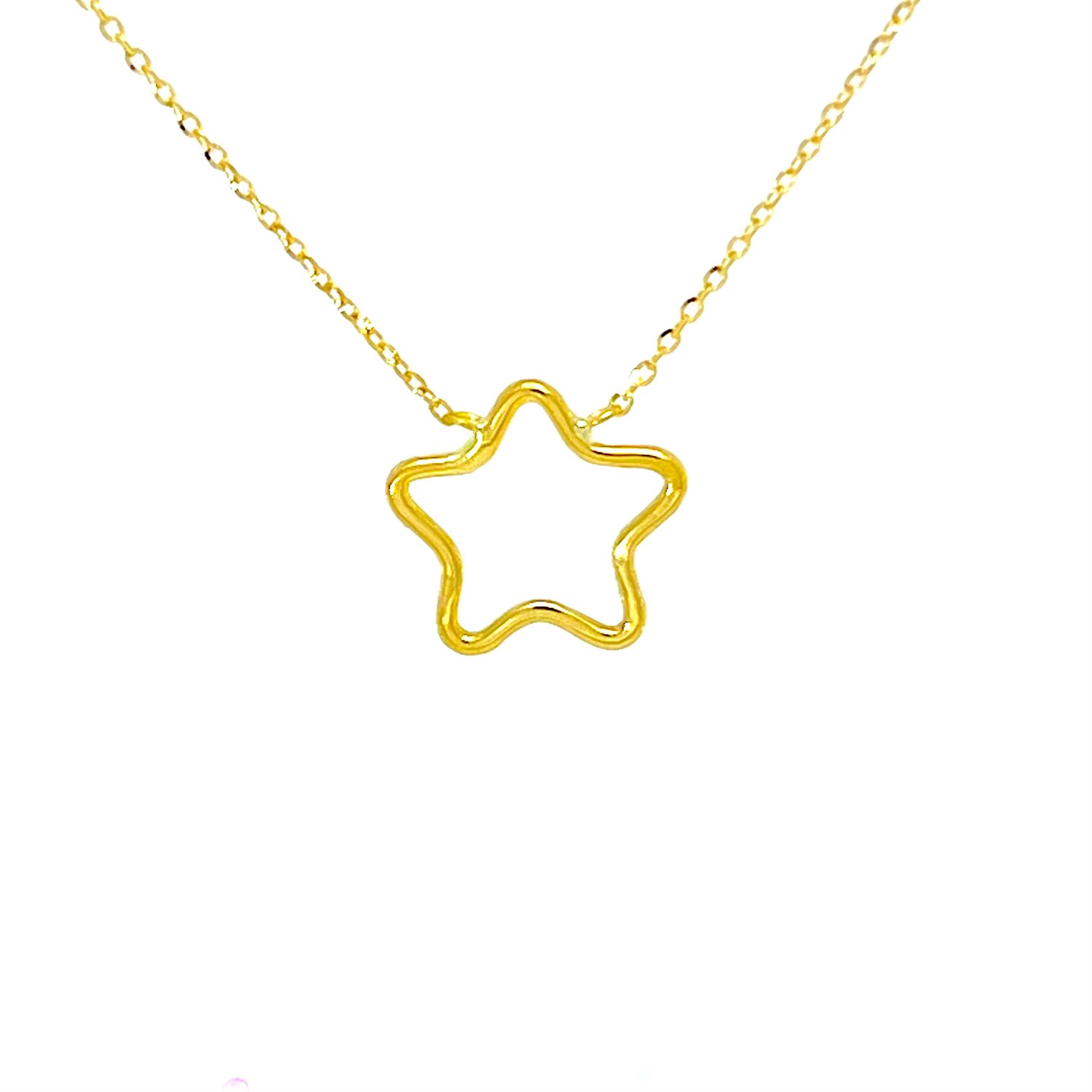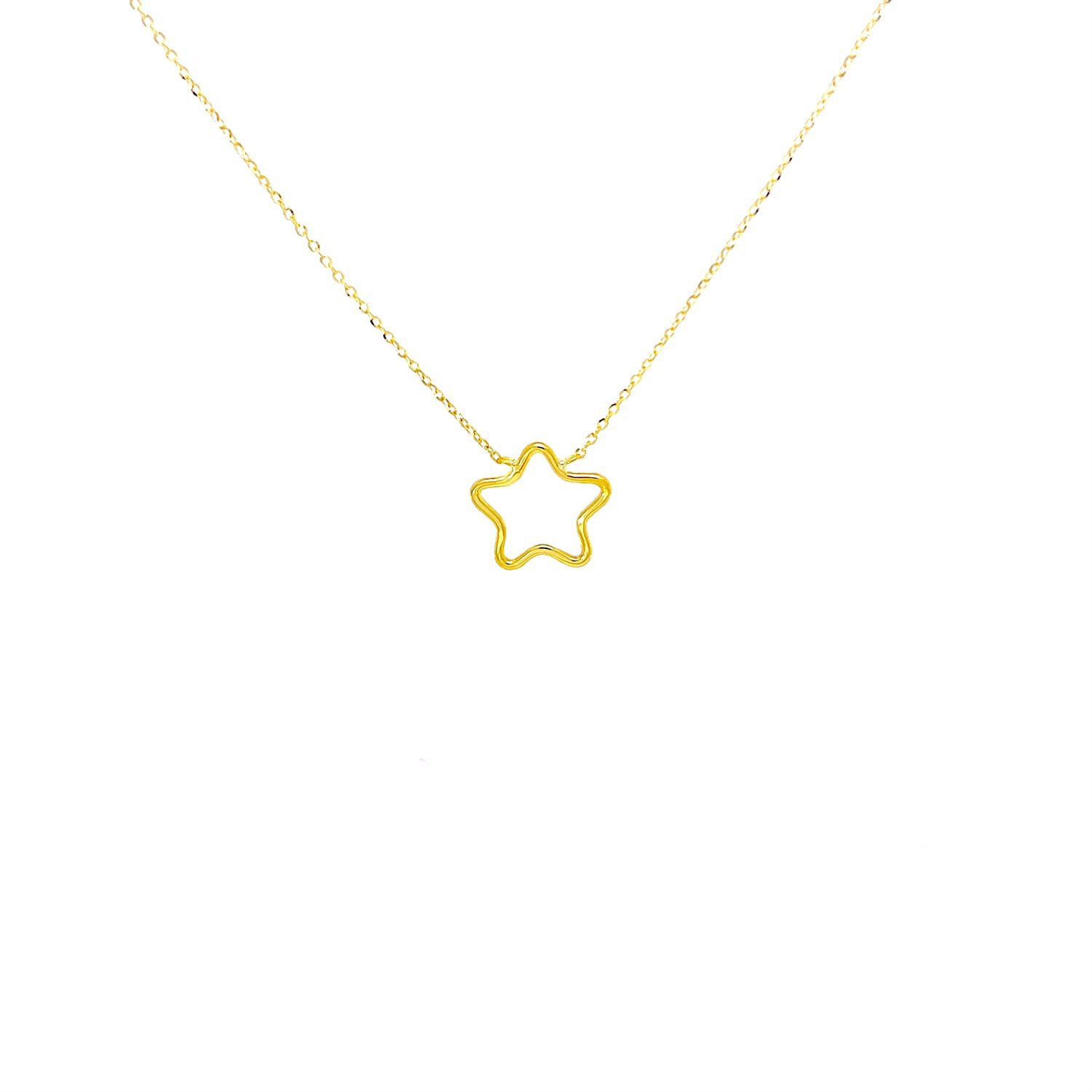 Collana in Oro Giallo 18 Carati con Pendente a Stella a Filo, un gioiello elegante e senza tempo ideale per ogni occasione. Realizzata con oro giallo di prima misura, questa collana unisce la purezza del prezioso metallo a un design delicato e contemporaneo, perfetto per chi ama i dettagli simbolici e raffinati.