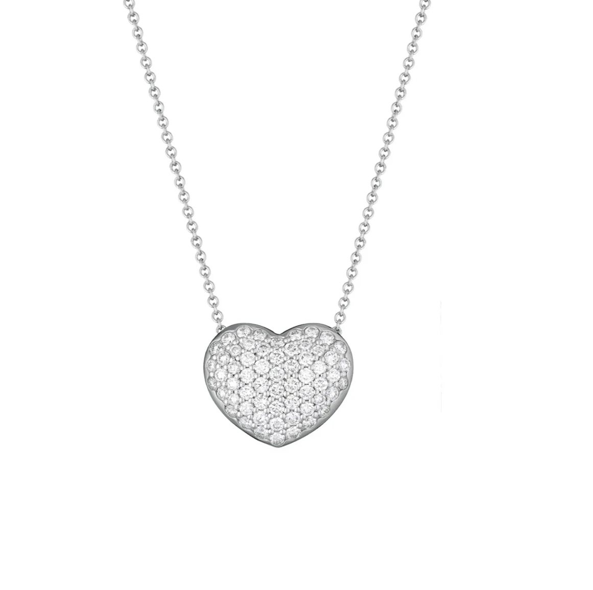 Collana in oro bianco 18ct e diamanti. Il cuore, simbolo universale d’amore e affetto, è sapientemente plasmato in un pendente raffinato, impreziosito da diamanti naturali tagliati con maestria che catturano la luce con un bagliore inconfondibile.