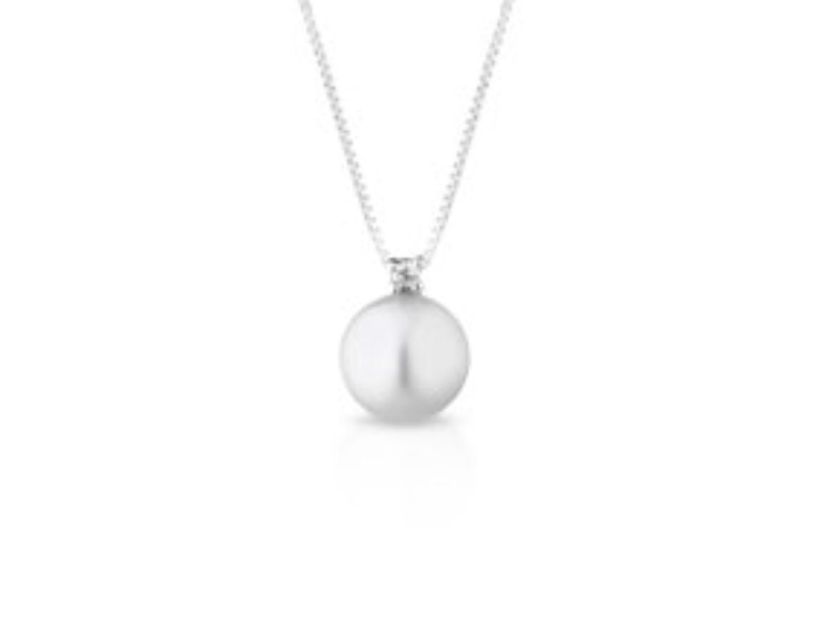Collana in Oro Bianco 18 Carati con Ciondolo Pendente in Perla Giapponese e Diamante da 0,02 Ct