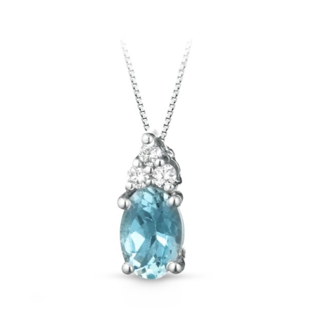 Collana in oro bianco con pendente con acqua Marina 0,40 circondato di diamanti 0,05VS G
