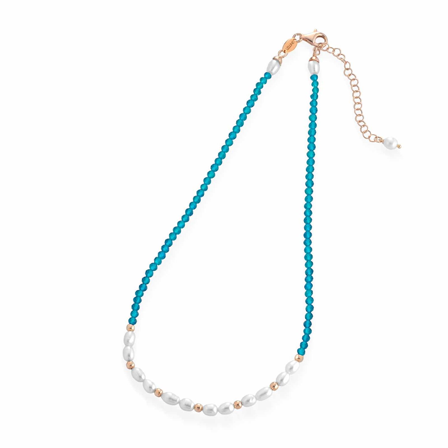 Collana con spinello turchese, argento rosa e perle d’acqua dolce