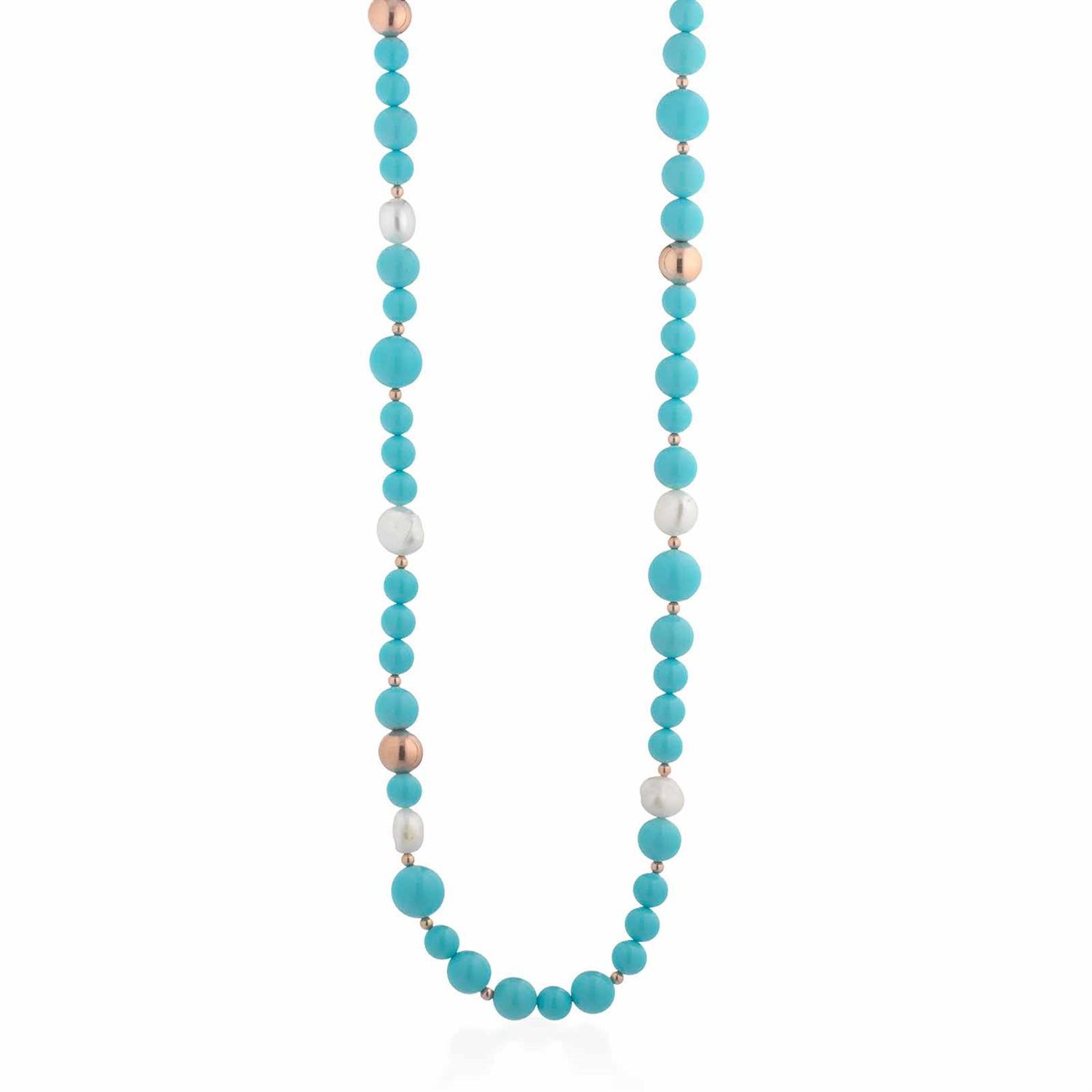 COLLANA CON PERLE FW, PASTA DI TURCHESE ED ELEMENTI IN ARGENTO.