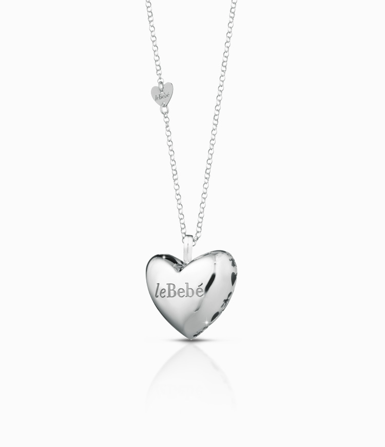 Ciondolo Suonamore in argento 925, a forma di cuore con sagome traforate intorno. Catena in argento 925 regolabile da 110 cm. a 90 cm. con un cuoricino al lato. Le Bebè Suonamore è il nuovo gioiello pensato per le mamme in attesa.