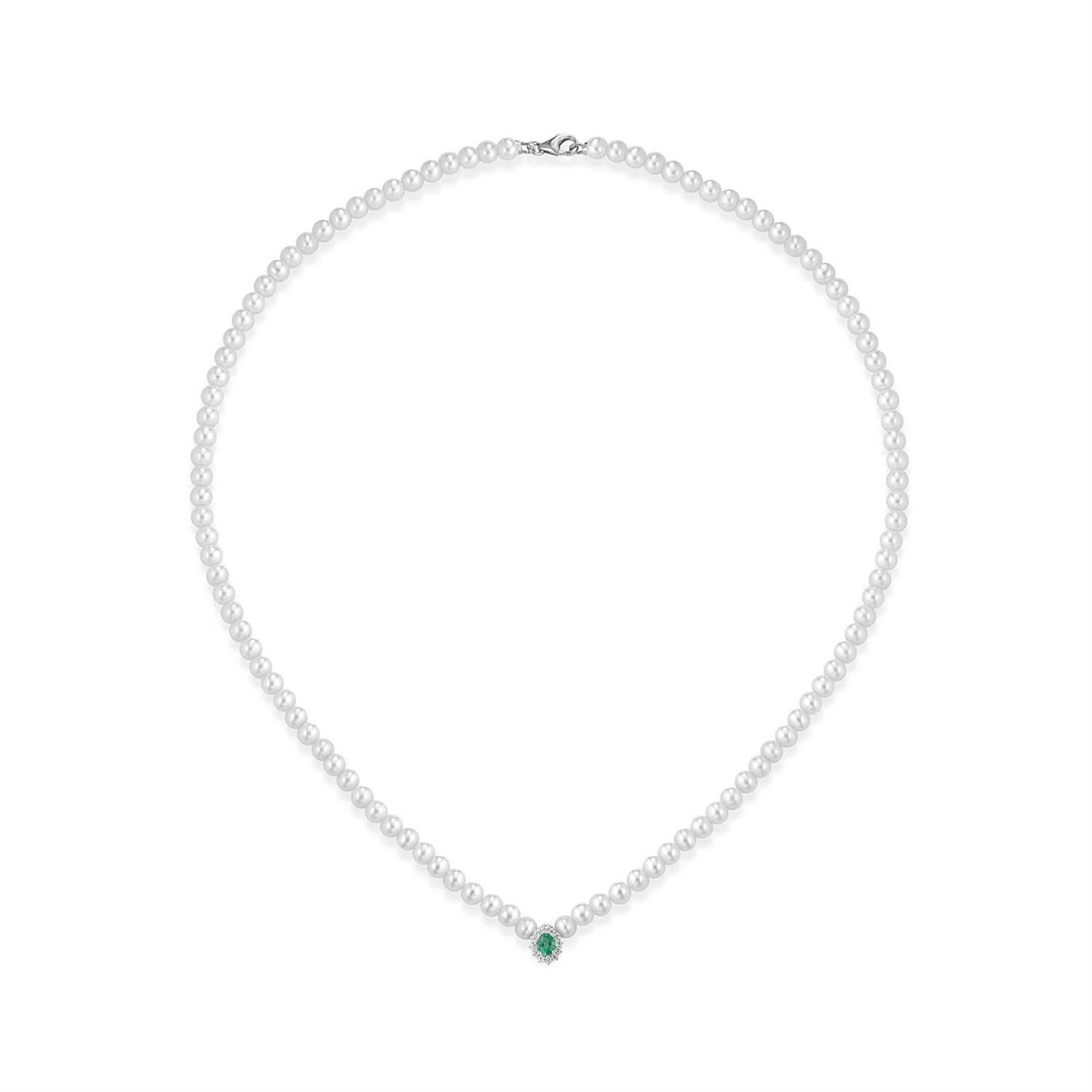 COLLANA PERLE DI ACQUA DOLCE CON DIAMANTI ESMERALDO CON CHIUSURA IN ORO 18CT
