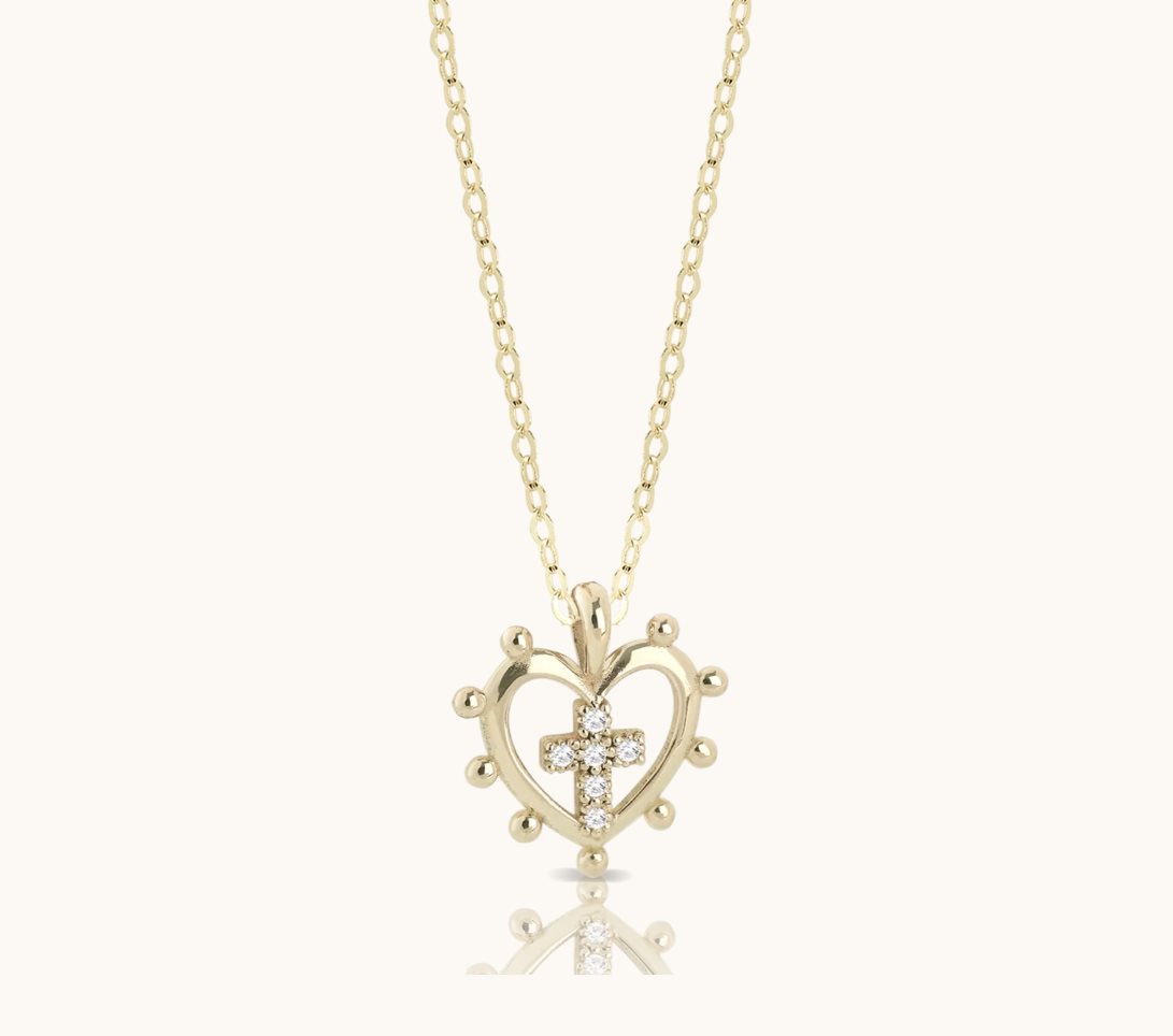 • CIONDOLO: A forma di cuore sacro e croce di diamanti bianchi da 0,03 ct G VS