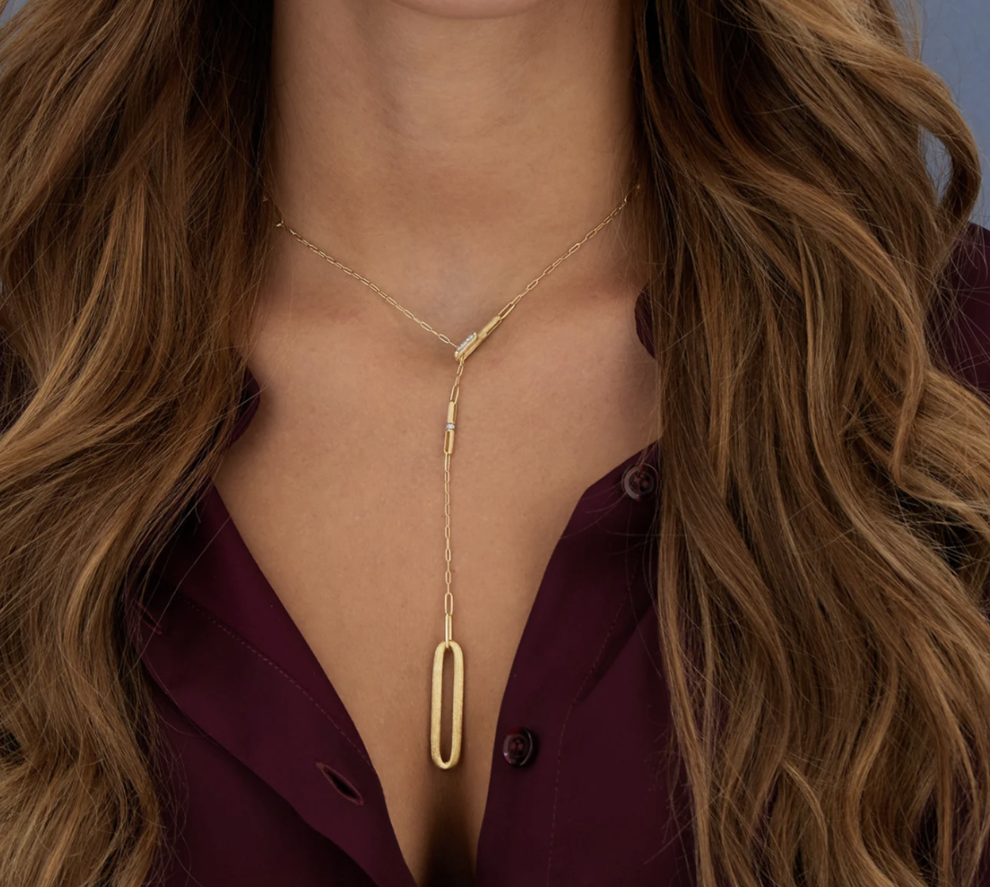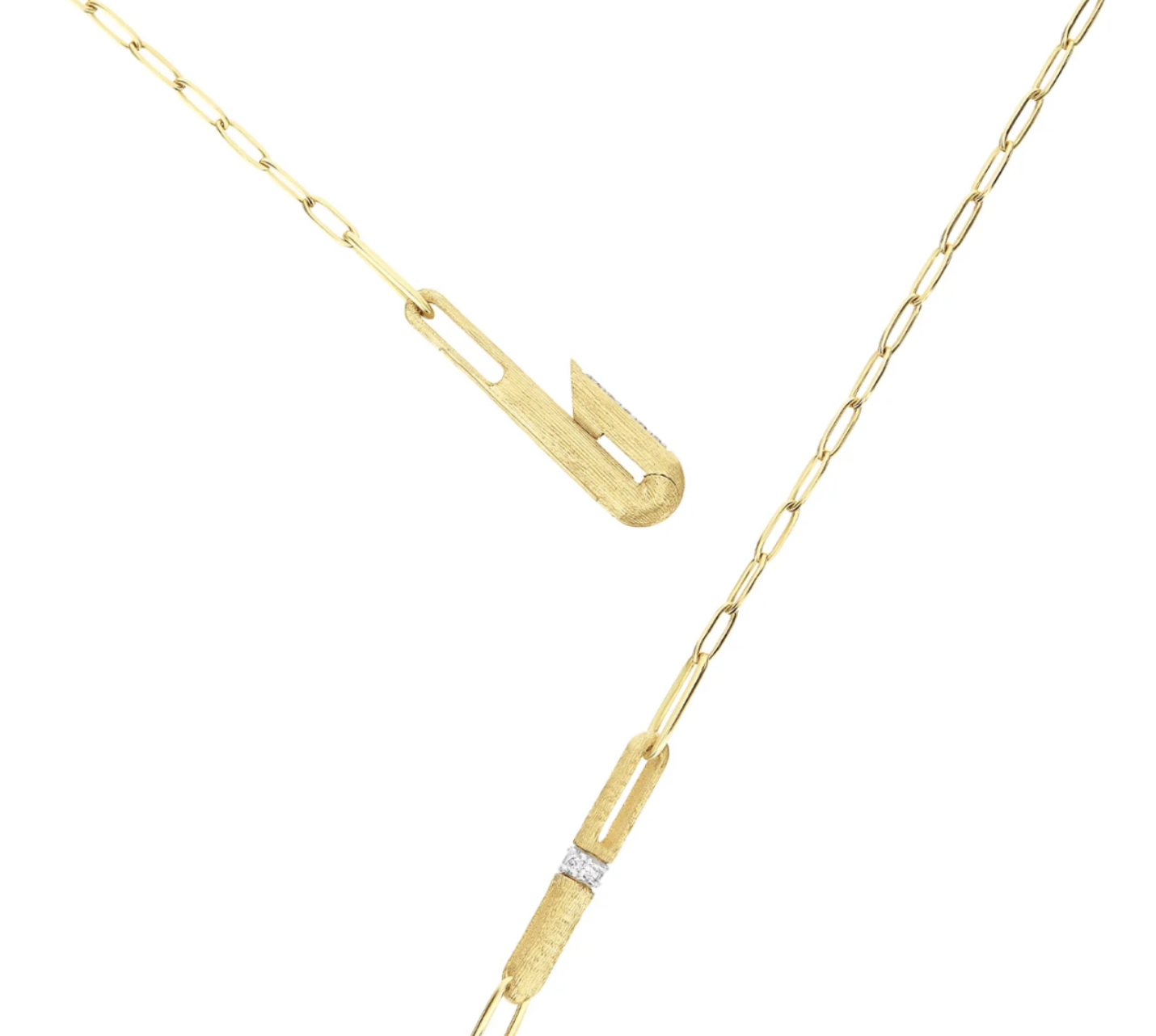 La speciale chiusura in brillanti, che si aggancia nei diversi punti della collana, vi permetterà poi di interpretare questa piccola opera d’arte secondo la vostra personalità e gusto. Abbandonatevi alla leggerezza e versatilità di questa creazione, summa di artigianalità e modernità.