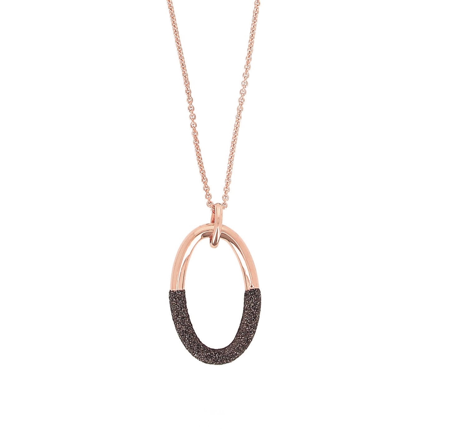 Collana con ciondolo in argento 925 placcato oro rossa con pendente ovale e polvere d’argento colore brown
