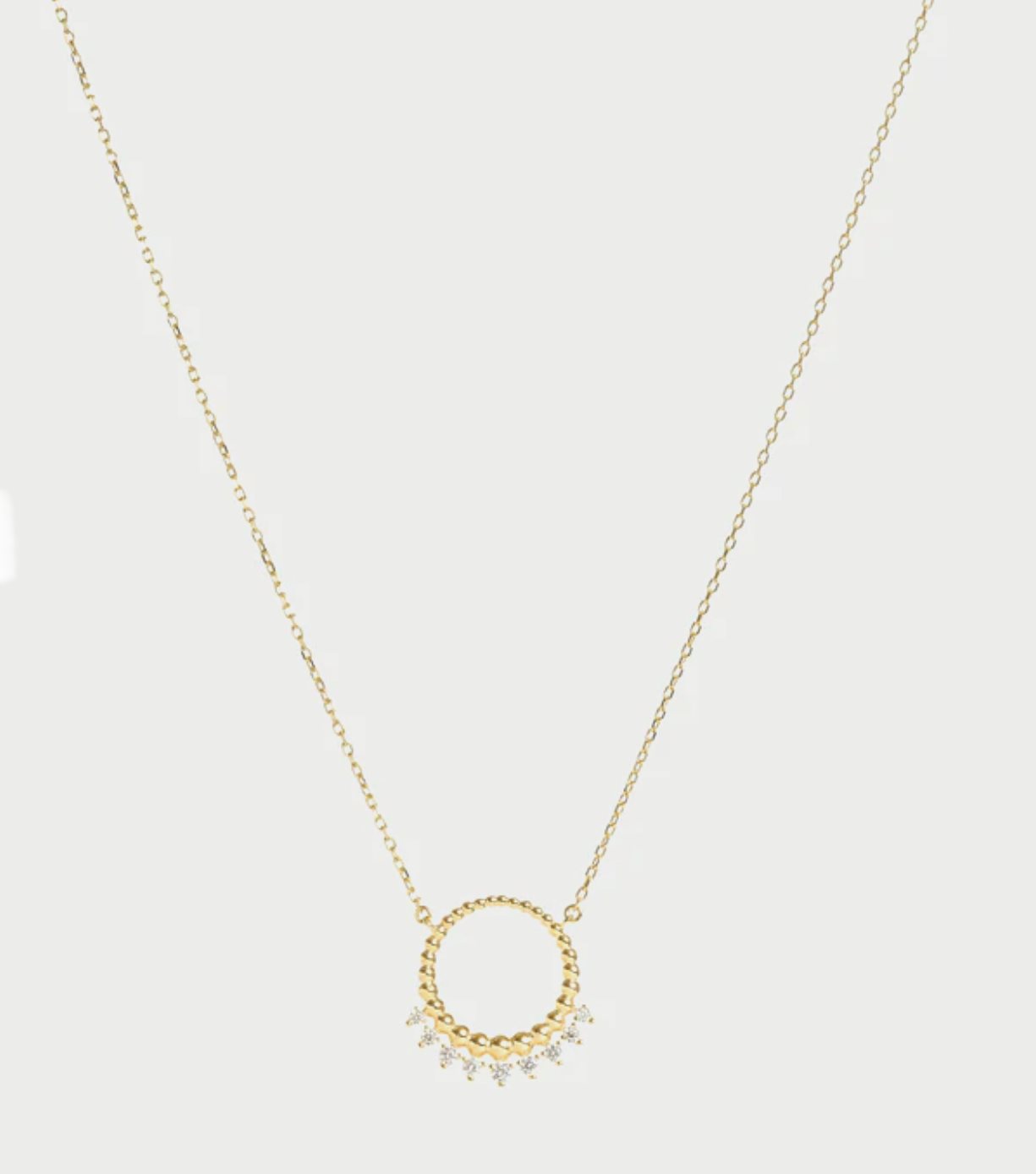 Questa collana con pendente Halo circolare è un gioiello raffinato ed elegante, perfetto per aggiungere un tocco di luce e stile a qualsiasi look.