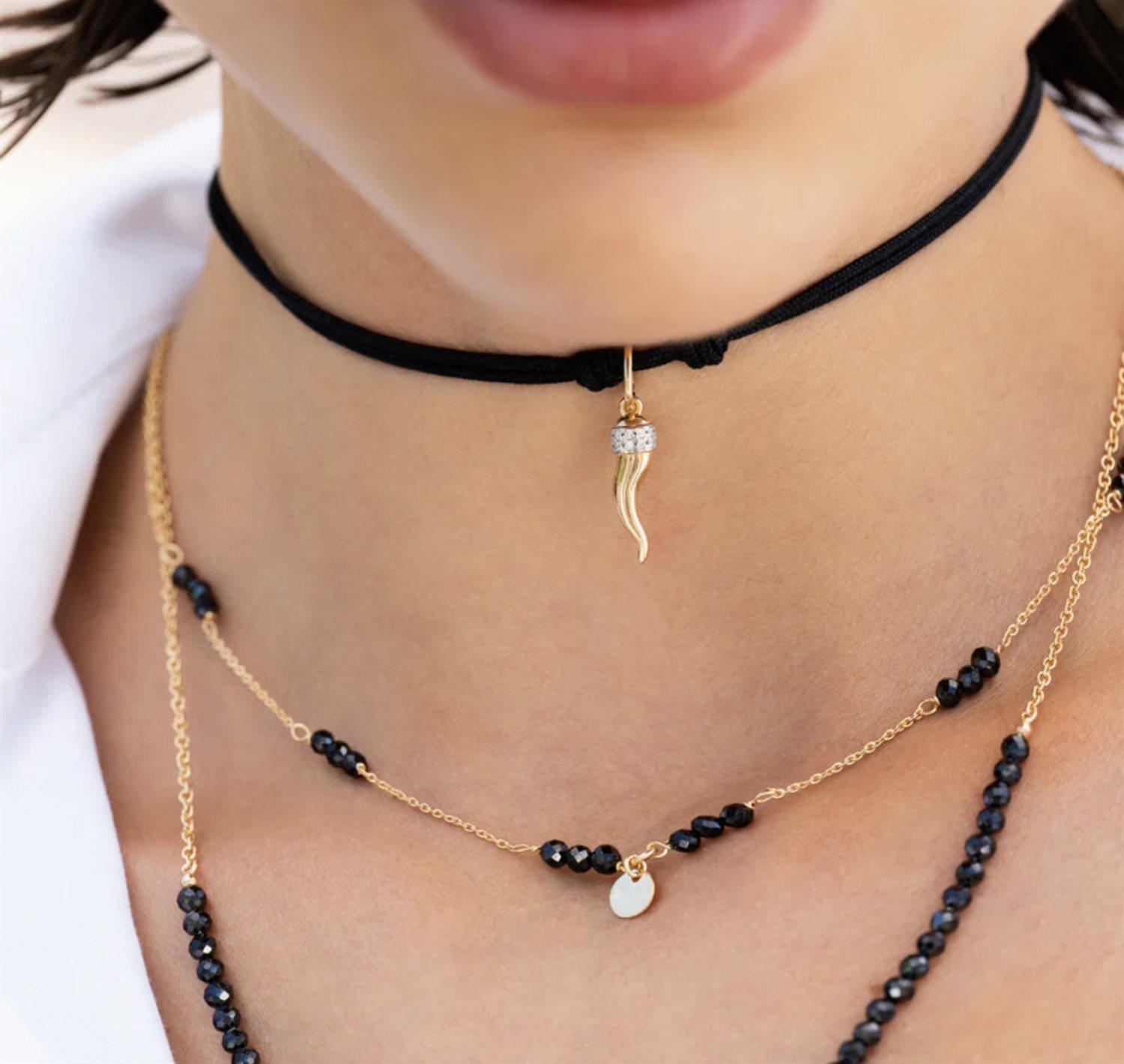 Questo girocollo della collezione Gipsy Chic unisce l’eleganza dei dettagli alla forza del simbolismo. La catena in argento 925 dorato è impreziosita da pepite di zirconi dark, che riflettono la luce con delicatezza e creano un ritmo visivo raffinato e armonioso. Al centro, una medaglia liscia dona equilibrio al design, aggiungendo un tocco di significato e carattere. Pensato per chi ama gioielli discreti ma pieni di personalità, è perfetto sia indossato da solo che abbinato ad altri pezzi per un look boho contemporaneo.