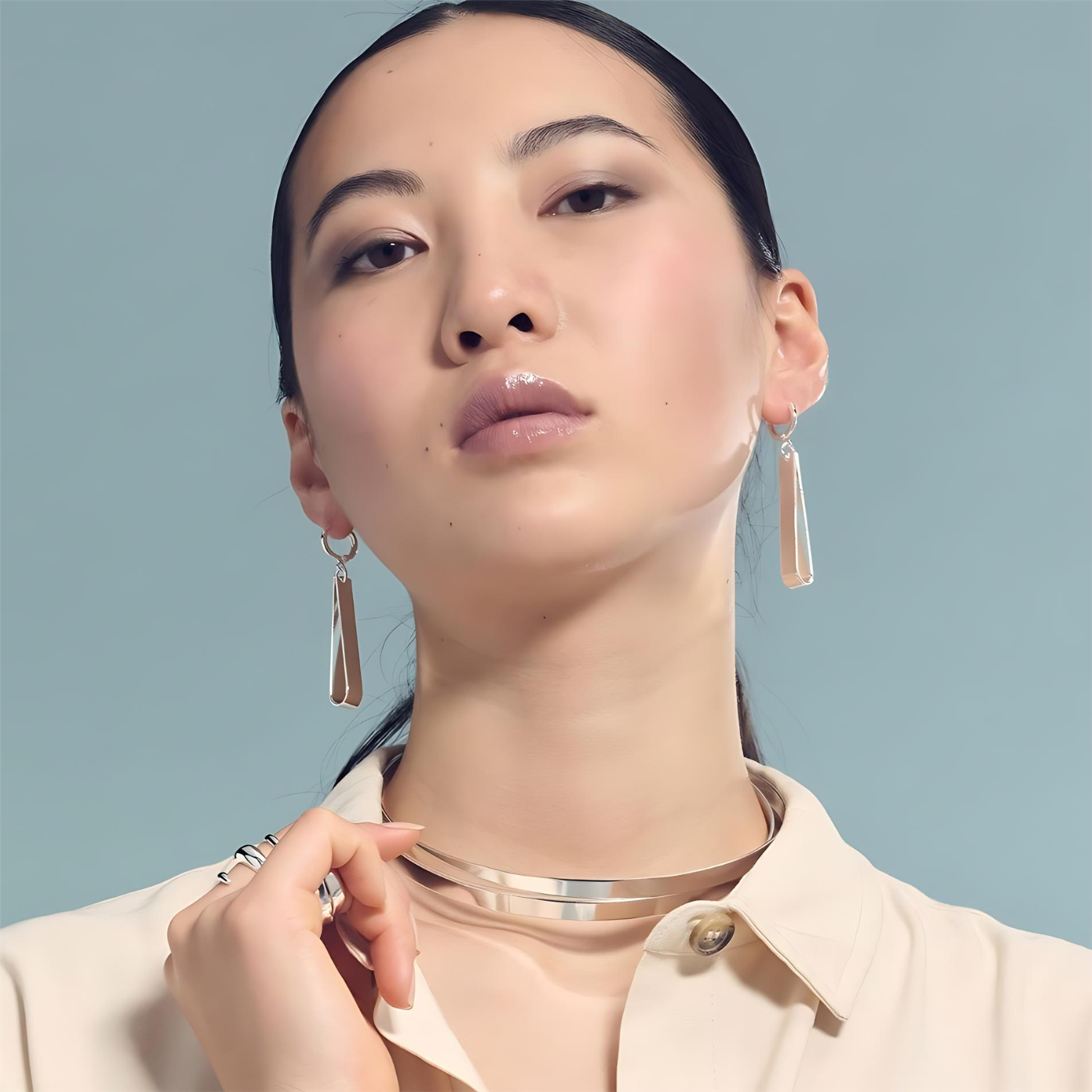 Cattura ogni sguardo ed esprimi la tua personalità ed il tuo stile unico con la collana modello chocker LUX composta da due fili piatti rigidi e catena regolabile su retro. Un gioiello unico caratterizzato da un design minimale ed elegante in cui ogni dettaglio crea armonia di forme per un tocco luminoso ad ogni look.