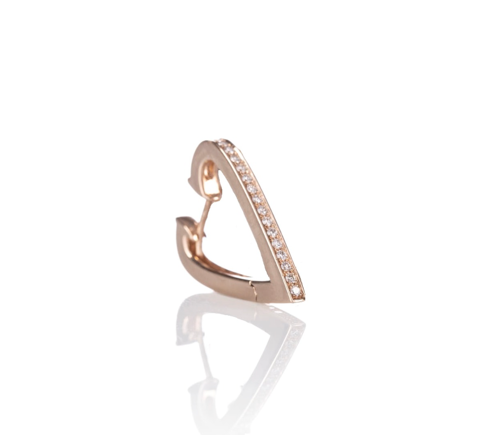 Il lato destro del cuore è impreziosito da diamanti naturali taglio brillante per un totale di 0,17 carati, che catturano la luce con ogni movimento, regalando brillantezza e fascino discreto. Perfetto per chi ama indossare pezzi unici e contemporanei, questo orecchino si adatta sia a un uso quotidiano che a occasioni speciali.