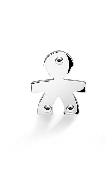 Monorecchini con sagoma maschietto in oro bianco con chiusura a farfallina, altezza 1 cm. larghezza 0,90 cm.