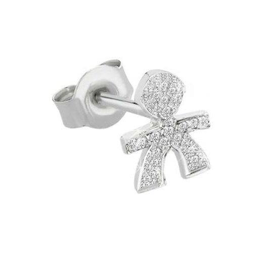 Mono orecchino sagoma bimbo in oro bianco 18kt con pavé di diamanti da 0,03 ct