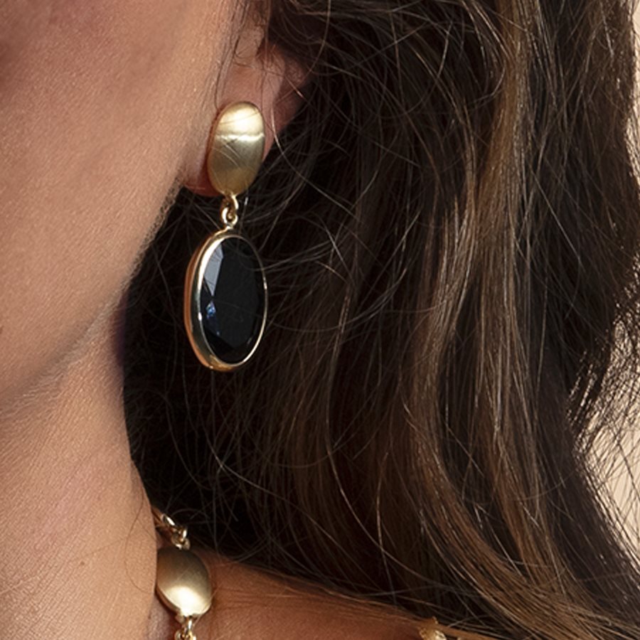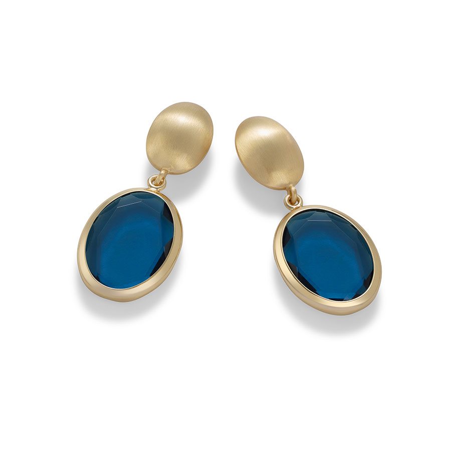 Orecchini pendenti in AG 925‰ placcato oro giallo 23 kt. con pasta vitrea Blu