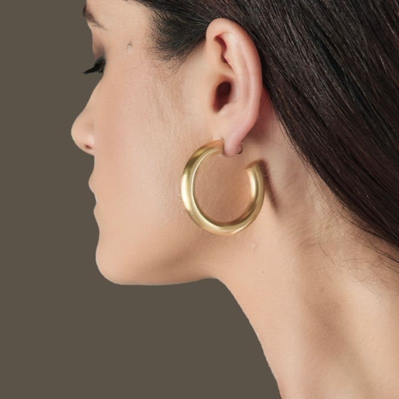 Orecchini a cerchio in AG 925 placcato oro giallo 23 kt. in lavorazione a canna oliva, diametro mm.24