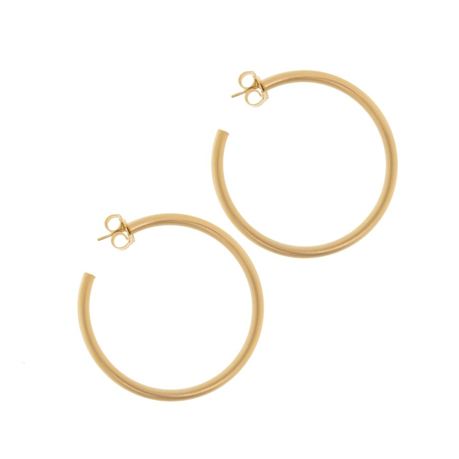 Orecchini a cerchio satinati a mano in AG 925‰ placcato oro giallo 23 ct. Diametro cm 5.