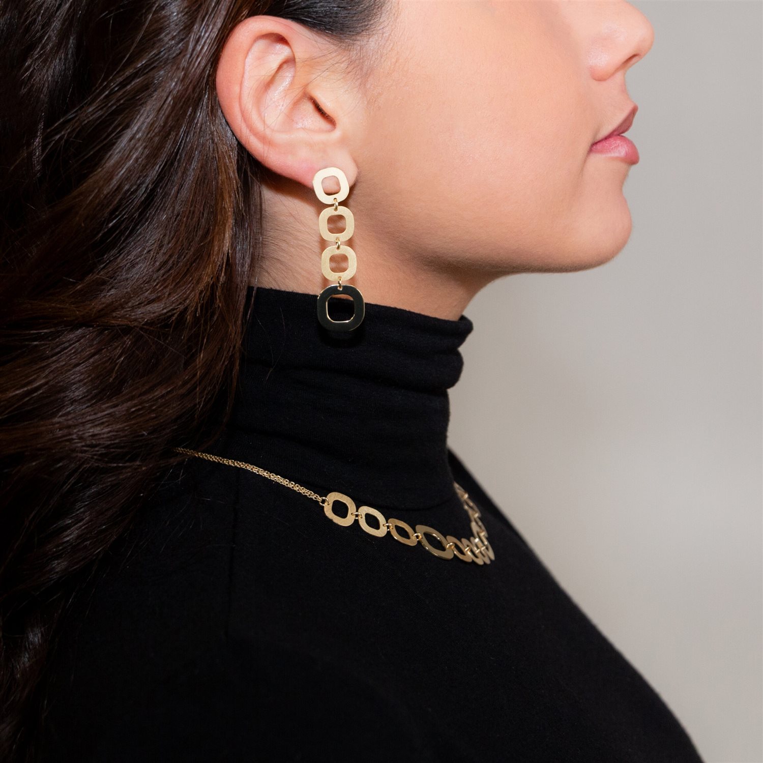 Orecchini pendenti Vintage Glamour con lastre quadre lucide e satinate