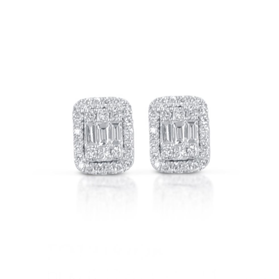 Eleganza senza tempo e design contemporaneo si fondono negli Orecchini Lobo, un gioiello raffinato che incarna il perfetto equilibrio tra lusso discreto e fascino moderno. Realizzati in oro bianco 18 carati, di altissima qualità e brillantezza, questi orecchini sono impreziositi da una selezione di diamanti taglio brillante e da baguette centrali taglio rettangolare, sapientemente incastonati per esaltare al massimo la loro luce naturale.