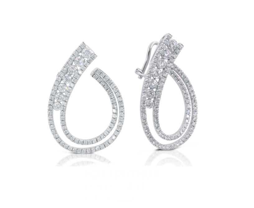 Realizzati in pregiato oro bianco 18 carati, questi orecchini incantano con una straordinaria pavé di diamanti naturali per un totale di 4,35 carati, sapientemente incastonati per esaltare al meglio la loro brillantezza e purezza.