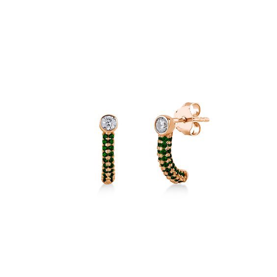 Orecchini in argento 925 placcato oro rosa con cubic zirconia verde