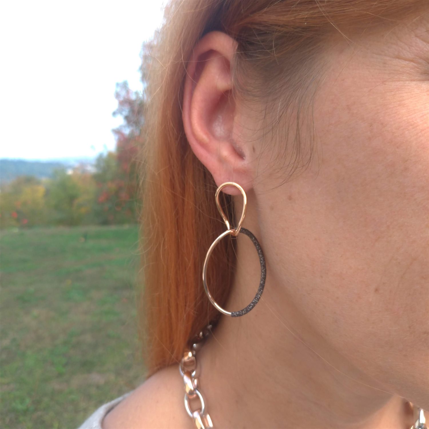 Argento 925 parzialmente ricoperto dallo speciale materiale Polvere di Sogni. Si tratta di micro particelle ottenute, con la nanotecnologia, dalla lavorazione di materiali naturali minerali, a seconda delle caratteristiche e dei colori che si desiderano ottenere, e hanno una forma esagonale per esaltare l’effetto ottico della riflessione