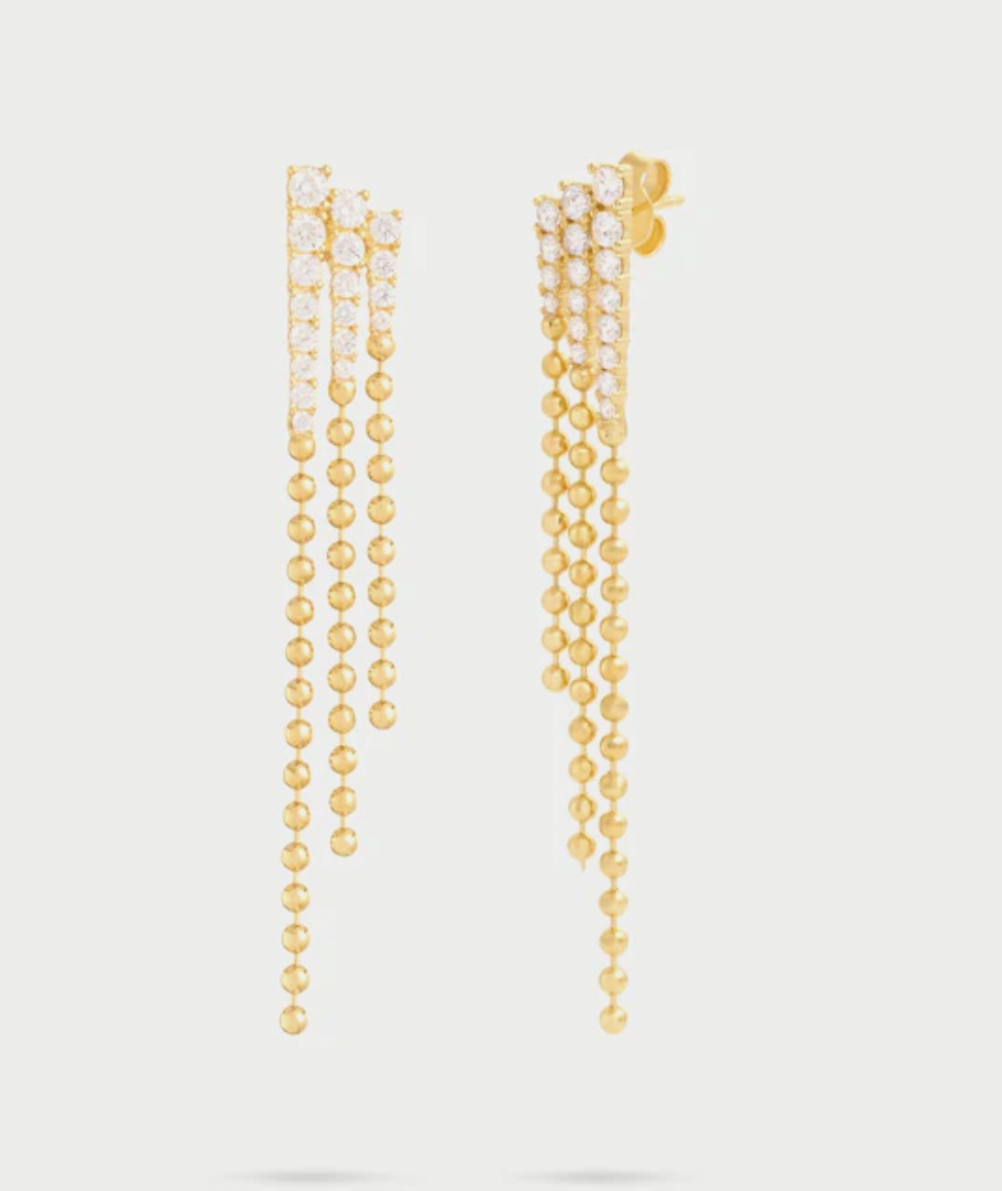 orecchini in argento dorato 925% tre fili pallianti con base in zirconi