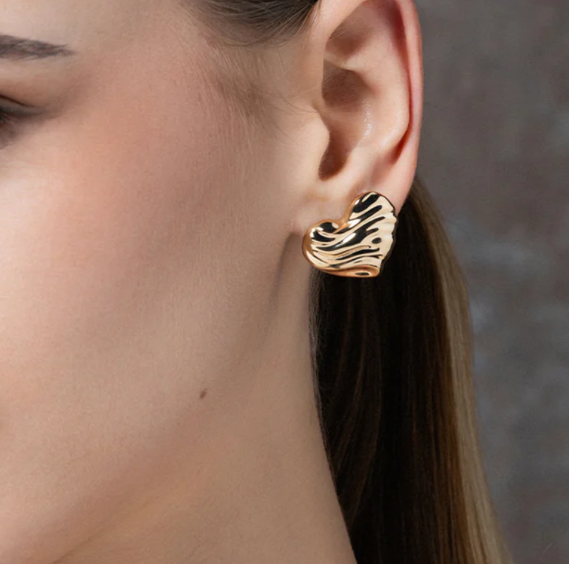 La texture a onda dona movimento e luminosità, mentre la forma cuore oversize esprime carattere e passione.