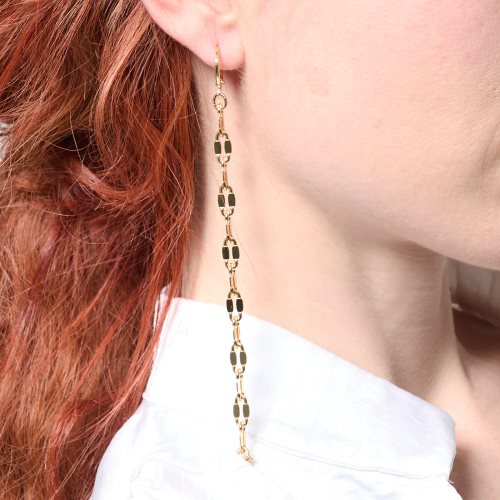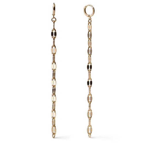 Orecchini lunghi in maglia marina piatta con finitura lucida dorata. Chiusura a monachella tonda. L’iconica maglia marina viene declinata in versione piatta per un finish ancor più luminoso e contemporaneo. Unoaerre rende omaggio alla storica produzione catene rivisitando in chiave attuale alcuni iconici capisaldi dell’oreficeria. Scopri la collezione Dinamica, lasciati conquistare dall’incredibile versatilità delle catene gioiello e rendi unico il tuo stile.