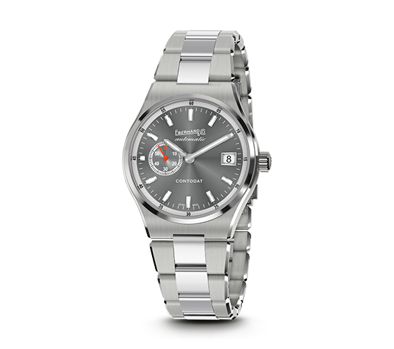 berhard Contorta automatic, solo tempo meccanico a carica automatica cassa in acciaio, vetro zaffiro scavato e convesso con trattamento antiriflesso, corona acciaio a vite personalizzata, fondo in acciaio serrato a vite personalizzato, finitura centrale satinata e lucida sulla circonferenza personalizzata con incisione dorata in latino ” Ubi tu Ibi ego”. Bracciale in acciaio integrato con finiture satinate e lucide, chiusura deplorante 2CLICK® personalizzata, lunetta in acciaio lucido.Quadrante grigio con finitura “Soleil”. Zona periferica con lavorazione “azuré” Indici applicati con trattamento luminescente.
